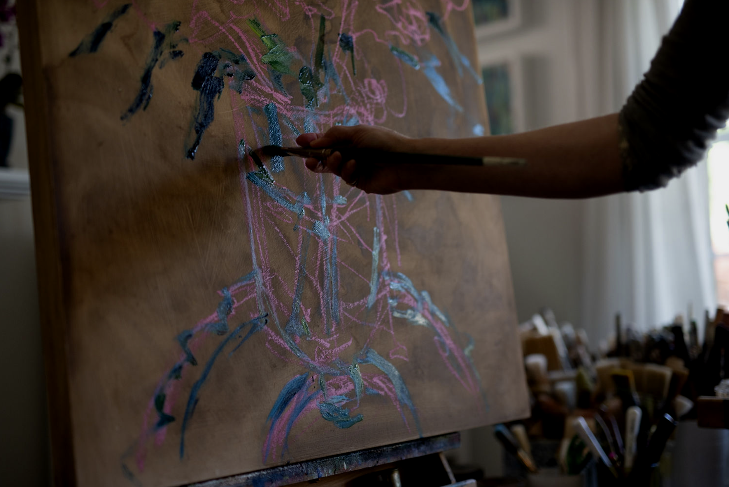 Working primarily from life, my studio practice balances intuition with deliberate observation. Painting directly from a subject brings immediacy and a certain urgency. The changing light demands responsiveness, inviting decisions that are both instinctive and considered. While oil painting on canvas forms the core of my practice, I also work with drawing and resin on panel, allowing each material to open different ways of exploring colour, surface, and structure.